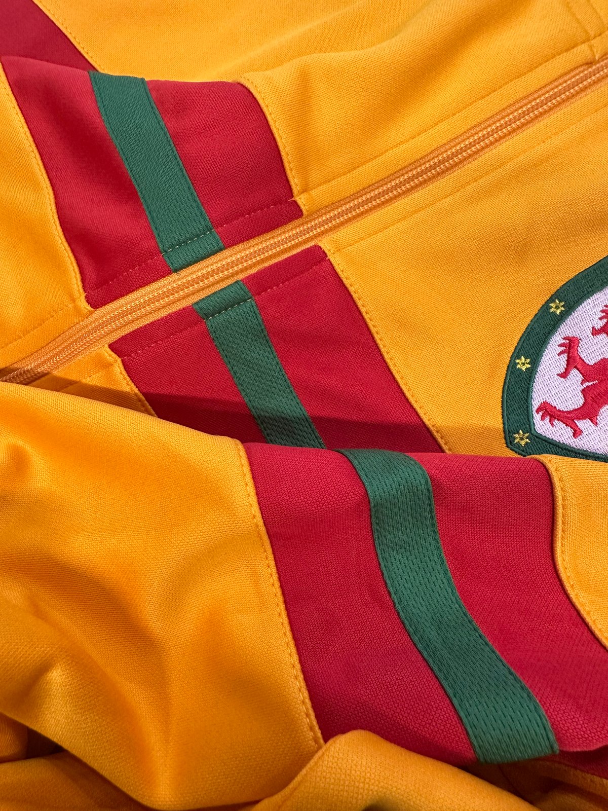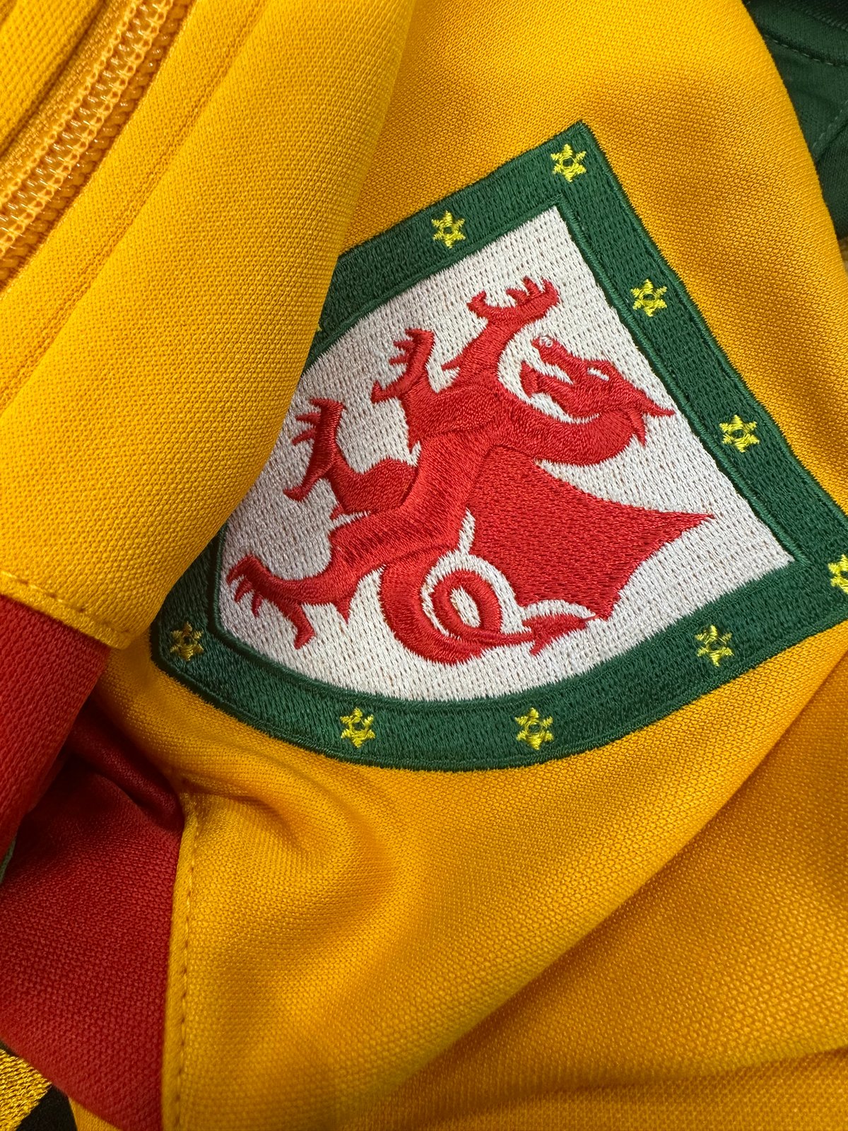 Made for Spirit of 58 Only Embroidered Crest on front of top CYMRU Embroidered on back of top Full Zip Side pockets with zips Ribbed hem and cuffs